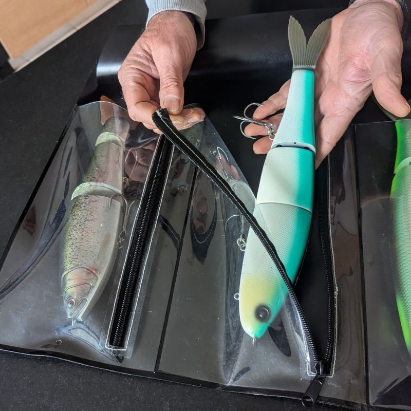 4 emplacements zippés de largeur 17cm, coloris noir, pour les maxi swimbaits jusqu'à 40cm (usage eau douce uniquement)